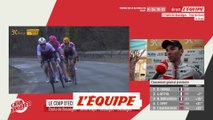 La réaction de Benjamin Thomas (Cofidis), grand vainqueur de l'Étoile de Bessèges 2022 ! Benjamin Thomas décroche le premier classement général de sa carrière professionnelle ! Impressionnant sur la troisième étape, puis tenace ce samedi sur le Mont Bouquet, le Français se présentait au départ du contre-la-montre, qui faisait office de dernière étape de l'Étoile de Bessèges, en ayant fait le plein de confiance. Dans son exercice de prédilection, le champion de France de la discipline n'a jamais été inquiété par ses principaux adversaires au classement général, Alberto Bettiol ou encore Tobias Johannessen. À l'arrivée, le coureur de la Cofidis prend la troisième place de l'étape derrière Filippo Ganna (INEOS Grenadiers) et Mads Pedersen (Trek-Segafredo) et remporte l'Étoile de Bessèges 2022.