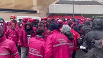 Kentin çeşitli noktalarından gelerek Şişli'deki Yemeksepeti Banabi'nin genel müdürlük binası önünde toplanan kuryelere Nakliyat-İş Sendikası üyeleri de destek verdi.