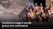 Cachorro cego e surdo é resgatado após ficar preso no meio de cachoeira no RJ