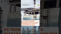 Operários ficam pendurados a mais de 100 metros de altura após andaime desabar em SP