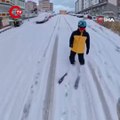Bursa kara teslim oldu Bir yurttaş işe kayakla gitti!