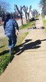 : Eric was taking pics outside before walking his dog one night and forgot there were stairs behind him. He then fell backwards in what looked like a giraffe falling to the ground—but he never lost the cigar in his mouth.