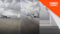 Pesawat American Airlines terbakar, penumpang cemas lari