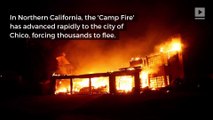 Thousands have been evacuated and told to prepare to leave their homes as fire swept through grassy foothills in the Sierra Nevada, about 60 miles north of Sacramento.