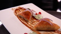 Samossa à l’agneau, petits pois et herbes fraîches, chutney de tamarin et sauce fraîcheur au yaourt et aux herbes