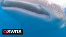 Incredible moment fishermen get to pet HUGE whale shark in Tanzania