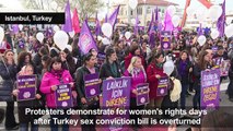 Women gather in Istanbul to demonstrate for their rights, a few days after the withdrawal of a controversial bill to cancel the convictions of some perpetrators of sexual assault.