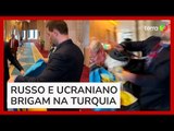 Representante ucraniano soca russo após ter bandeira do país retirada em evento na Turquia