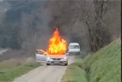 Une voiture prend feu sur une route de campagne à Issel, dans l'Aude