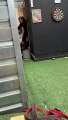 Snap, the rescued Cattle Dog, had a lot of energy. So she ran on this manual treadmill for an outlet. Although she could stop anytime, the dog seemed to enjoy the rush.