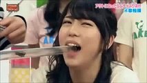 girls put their mouth on a pipe and blow to win this japanese game show
