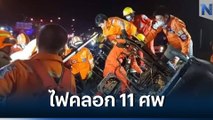 สลด! ย่างสด 11 ศพ รถตู้เสียหลักพุ่งตกร่องกลางถนนไฟลุกท่วมคัน รอด 1 ราย