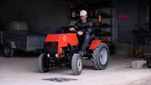 1970-1990 model hurda otomobillerin şanzıman, diferansiyel, lastik gibi parçaları ile su motoru ve atıl metalleri birleştirerek 6 ayda mini bir traktör imal etmeyi başardı.