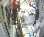 Öte yandan soygunu gerçekleştiren iki şüphelinin kaçış anları da çevredekilerden bir kişinin cep telefonu kamerasına yansıdı. Görüntülerde şapkalı ve cerrahi maskeli şüphelinin elinde bir poşet altınla kuyumcudan çıktığı ve motosikletli şüphelinin arkasına bindikten sonra hızla olay yerinden kaçmaları görülüyor.