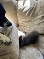 : "I do animal rescue and rehabilitation and Jasper the raccoon is non-releasable due to an injury. He was raised with my dogs and thinks that Sheba is his bestie. He always gets so excited when they play together.