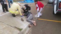 Mulher fica ferida ao sofrer queda na Rua Hyeda Baggio Mayer, em frente ao Parque Tarquinio