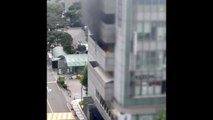 이 불로 다친 사람은 없지만 옥상이 모두 불에 탔고, 일대 교통이 한 시간 가까이 통제됐습니다.