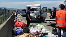 Kaza saat 12.30 sıralarında E90 Otoyolu Düziçi ilçesi kavşağı yakınlarında meydana geldi. İddiaya göre, Şanlıurfa'dan Çanakkale'ye mevsimlik işçi taşıyan Mehmet Sait A. idaresindeki 01 KL 831 plakalı kamyonet, sürücüsünün direksiyon hakimiyetini kaybetmesi soncu kontrolden çıktı. Araç bariyerlere çarptıktan sonra şarampole devrildi. Kazayı gören diğer sürücülerin haber vermesi üzerine bölgeye çok sayıda ambulans ve kurtarma ekibi sevk edildi. Sürücü ile birlikte 6'sı çocuk 15 yaralı, olay yerindeki ilk müdahalenin ardından Osmaniye ve Düziçi'ndeki çeşitli hastanelere kaldırılarak tedavi altına alındı. Yaralılardan 5'inin durumunun ağır olduğu öğrenildi. Haber