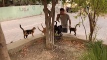 Sayıları gittikçe artan kedileri sahiplenerek beslemeyen Uzun; "İşletmemin önünde 5 tane kedi besliyorum. Her gün imkanlar doğrultusunda beslemeye çalışıyorum. 1 seneden beri onlarla birbirimize alıştık. Yavaş yavaş evcilleşiyorlar. Haber