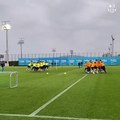 Buen ambiente en el entrenamiento del Barça