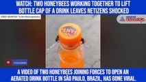 Watch: Two honeybees working together to lift bottle cap of a drink leaves netizens shocked