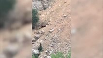 Doğaseverler vaşağın, yaban keçilerinden birini kovalayarak yakalamaya çalıştığı anı cep telefonuyla kayıt altına aldı.