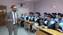 Ödül töreninin açılışında konuşan Mesleki Eğitim Merkezi Müdürü Mustafa Şahin, "Öğrencilerimiz yıllardır kendilerine bu fırsatın gelmesini bekliyorlardı. Artık o özlem duydukları lise diplomasına kavuştular. Haber