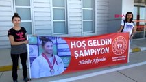 Dünya şampiyonu habibe, çiçeklerle karşılandı