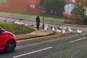Sevimli kazlar trafiği kilitledi
