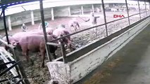İstanbul'un Arnavutköy ilçesinde ağaca bağlanan kurbanlık boğa, 7 kişi tarafından zapt edilemedi. Arka bacakları iple bağlı olan boğa kendisini tutan 7 kişiyi birden savurdu. Bir kişiyi yere yıktı.