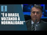 Ao lado de Bolsonaro no Plenário estiveram o presidente do Senado, Rodrigo Pacheco (PSD-MG); o presidente da Câmara, Arthur Lira (PP-AL) e o líder do governo no Congresso, Eduardo Gomes (PL-TO).