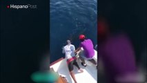 Por poco se ahoga al lanzarse a atrapar la pieza que pescaba