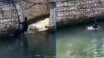VAN'ın Erciş ilçesinin su debisi yüksek Deliçay Deresi'nde mahsur kalan koyun, ailesi ile birlikte bölgeye piknik yapmaya gelen Zafer Avcı(39) tarafından kurtarıldı.