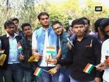 Prime Minister Narendra Modi's mother Hiraba, who entered the 100th year of her life in June this year, on Saturday distributed national flags to children at her residence on the outskirts of Gandhinagar city in Gujarat.