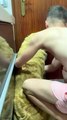 Golden Retriever Resists Shower Time