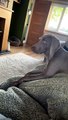 : "This is Hugo, he is now an 8-month-old beautiful Weimaraner. From a pup, Hugo had big beautiful ears. He could always see them in the corner of his eyes. On this occasion, we were sitting at home when he decided to try and catch his ears and it was something I just had to record. The video was taken around May when Hugo was about 5 months old. It was just a perfect video and at the end he looks as if to say ‘I can’t get them.’"