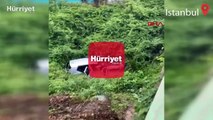 BEYKOZ'da sağanak nedeniyle kayganlaşan yolda sürücüsünün kontrolünden çıkan otomobil dereye uçtu.