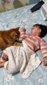 Cute Kitty Massages Baby's Belly