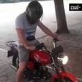 Ce biker tente une roue arrière au feu rouge... raté