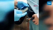 Polis tarafından fark edilen şahsın üzerinden düğme kamera wifi, ses verici kart ve güç kaynağı çıktı