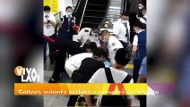 Avienta maleta por escaleras eléctircas y provoca accidente