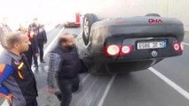 Takla atıp ters dönen otomobilde yaralanan 2 kişiyi itfaiye ekipleri kurtardı