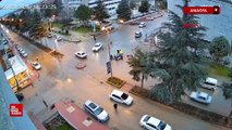 İNEGÖL'DE MOTOSİKLETİN HAFİF TİCARİ ARACA ÇARPTIĞI KAZA KAMERADA
