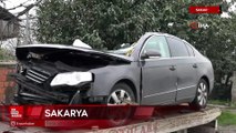 Skarya'da tıra arkadan çarpan araç kağıt gibi ezildi