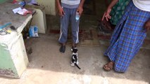 Two funny kitten climbing tree in India