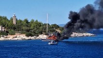 Yacht Burns on the Water
