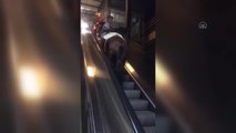 Maça giden taraftarın yürüyen merdivenle mücadelesi kameraya yansıdı