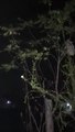 A CAT CLIMBING TREE AT NIGHT IN INDIA