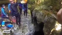 Ayağı kayınca 25 metrelik kanyondan suya çakıldı
