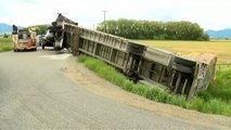 ABD'de şiddetli rüzgarda TIR böyle devrildi